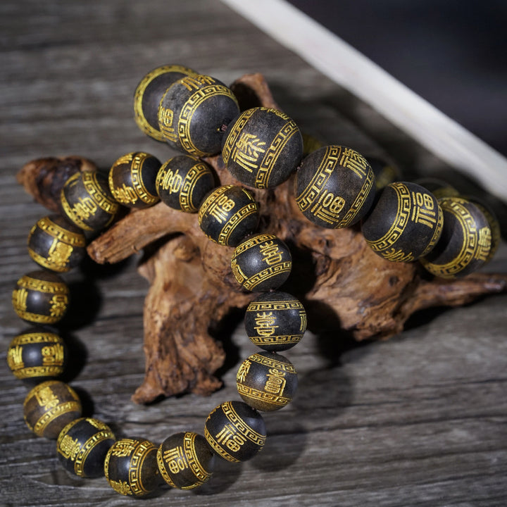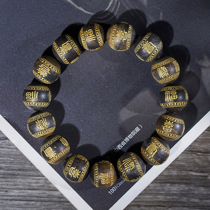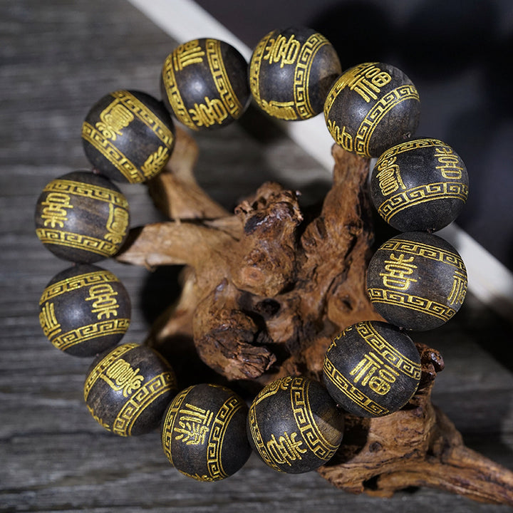 Hand-Carved "Hundred Fu" (Hundred Blessings) "Ruyi" (As-You-Wish) Bracelet with Gold Inlay